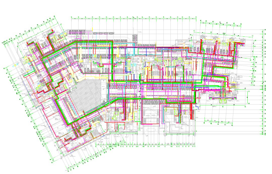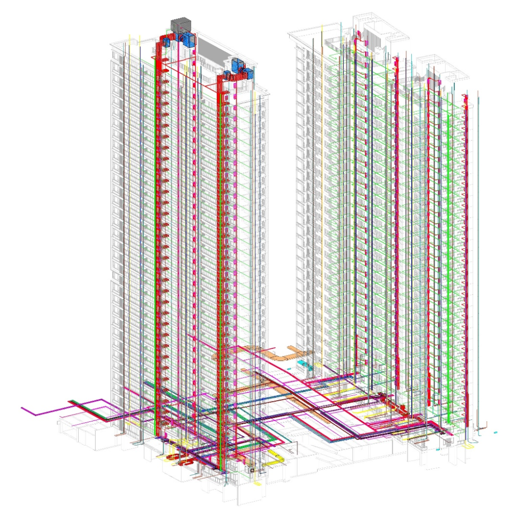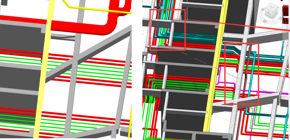 通过对全专业建模,对图面问题、碰撞问题、净高问题进行排查,形成问题记录,跟踪问题解决情况,确保在设计阶段将问题前置,解决问题。