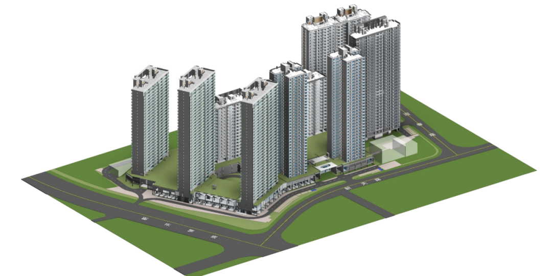 项目概况:本项目规划用地位于市天心区,新开铺路与新天路交汇处,规划建设用地面积为 45490 ㎡。拟建设总建筑面积为 196911.47㎡的住宅小区。方案由9栋高层住宅、1~2 层商业配套、3 层的幼儿园及 2 层地下室组成。总户数为 1164 户,容积率为 3.84,建筑密度为 25.59%,绿地率为 35%。